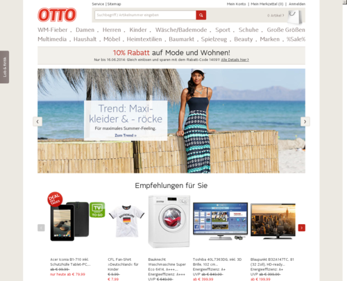 Otto.de ist unter den Online-Shops ein wahrer Allrounder. Hochwertige Mode von Top Marken, Schuhe, Möbel, Haushaltswaren und Elektroartikel, Produkte aus dem Bereich Baumarkt und der Kategorie Multimedia werden von dem Unternehmen mit einer langen Tradition angeboten und unter anderem über das Internet vertrieben.