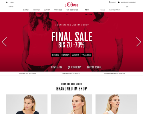 Der Online-Shop bietet ein breites Angebot aus der aktuellen Kollektion, die meisten Stücke, die man auch im Laden erwerben kann, werden hier angeboten. Im s.Oliver Sale findet man zusätzlich manchmal Stücke aus vergangenen Kollektionen, die hier noch zu haben sind und für die es dann sogar einen Preisnachlass gibt. Der Shop eignet sich daher auch für alle, die ein bestimmtes Stück von s.Oliver zum Beispiel im Laden nicht mehr in ihrer Größe gefunden haben. Durch das breite Angebot des Shops wird man hier häufig fündig und spart sich dann den Weg durch mehrere Filialen, in denen man eventuell vergeblich nach dem gesuchten Teil fahndet. Der Online-Shop s.Oliver.de ist übersichtlich aufgebaut. Ist man einmal registriert, kann man sich mit E-Mail-Adresse und Kennwort oder wahlweise mit der Kundennummer, die auf der s.Oliver-Kundenkarte vermerkt ist, anmelden. Hat man einen oder mehrere Artikel in den Warenkorb gelegt, wird man durch den Bestellvorgang bis zur Bezahlung begleitet. Es gibt mehrere Zahlungsmöglichkeiten: Kauf auf Rechnung (Bonität vorausgesetzt), Kreditkarte oder die Bezahlung Nachnahme.
